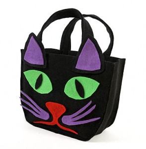 This Halloween project is so easy – it’s almost scary! For older kids, it’s a great way to teach basic sewing skills. Younger kids can get in on the action by gluing the facial features onto a bag sewn by Mom.